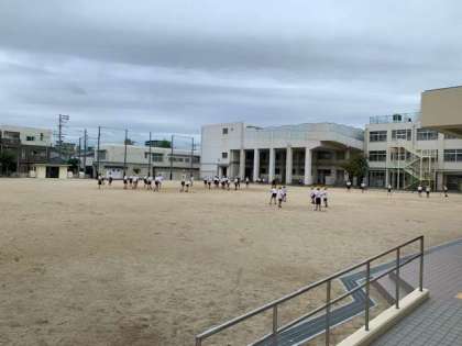 朝の準備が終わると、運動場で遊んでいる子もいます。