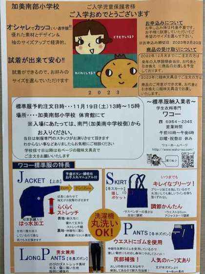 新一年生対象「標準服予約注文日」
