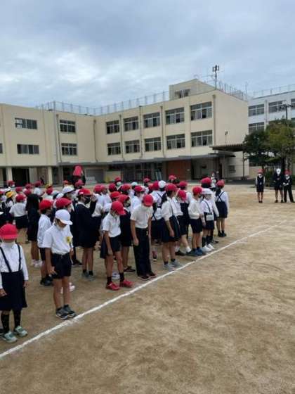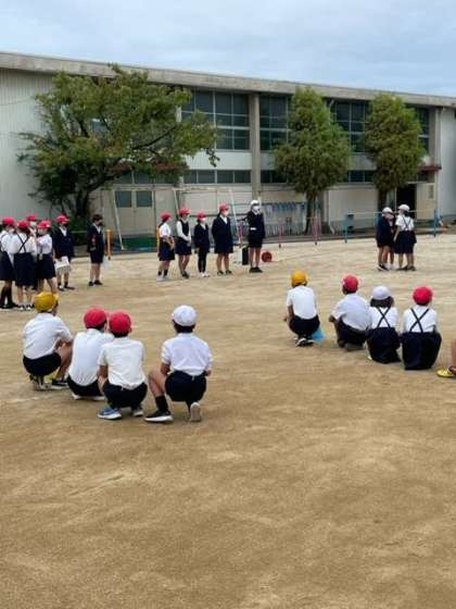 運動場で「運動会に関する○??クイズ」を楽しみました。