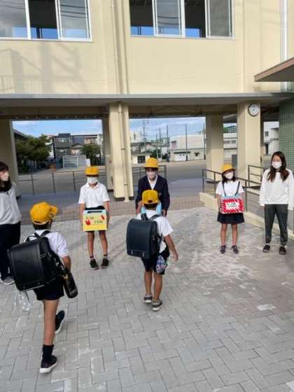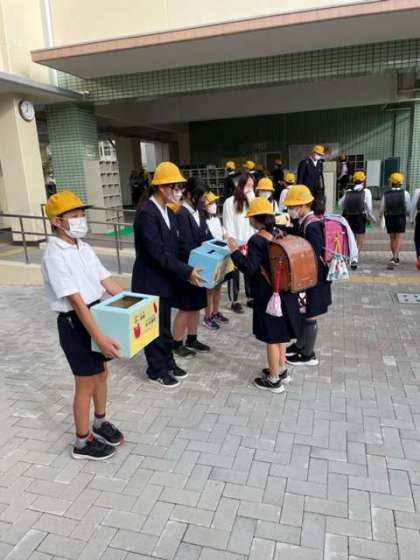 本校では毎年、互いに助け合う心をはぐくむ一環として、赤い羽根共同募金運動に参加しています。