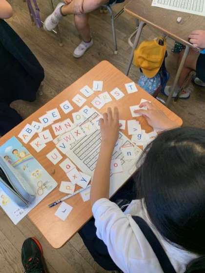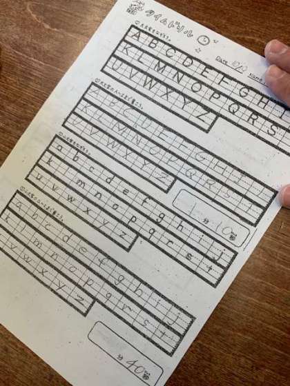 今日はC-NETとの学習です。アルファベットを書いて、覚えているか確認していきます。