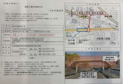 大阪市建設局南部方面管理事務所から、下記の場所を塗装工事する予定だと連絡をいただきました。