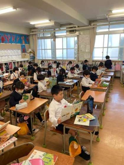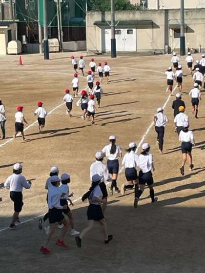 今日の「朝の活動」は、1年生と6年生が「かけ足」、他の学年は朝読書でした。