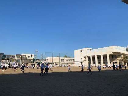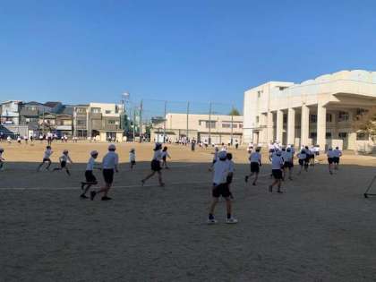 今朝の時間は、ペア学年での集会です。何周走れるのか、今日も自分自身との戦いです。