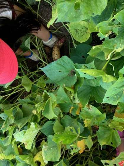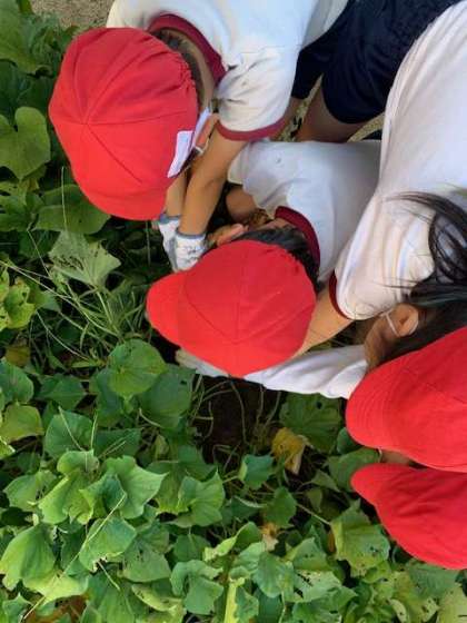 「わーわー」「きゃーきゃー」言いながらも土を触ってさつまいもを見つけていく子どもたちです。