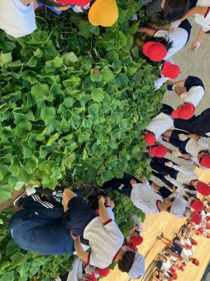 今日は2年生が、丹精込めて育てたさつまいもを掘る日です。