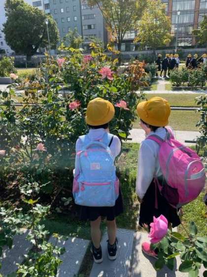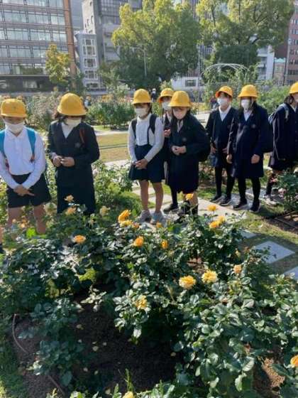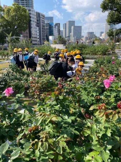 「朝日新聞社」に向かう途中で、バラ園の散策をしました。