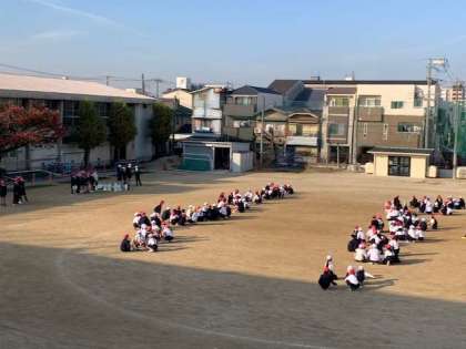 今朝は、集会委員会が司会でクイズを出してくれたのをペア学年の班で解答を考えました。