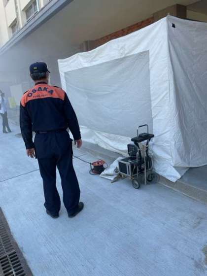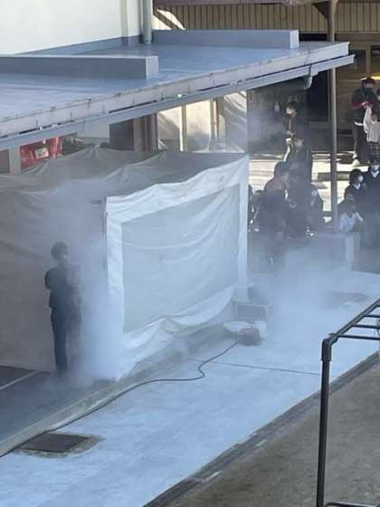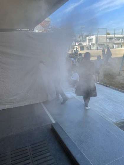 姿勢を低くして煙の中を進む体験をさせてもらいました。