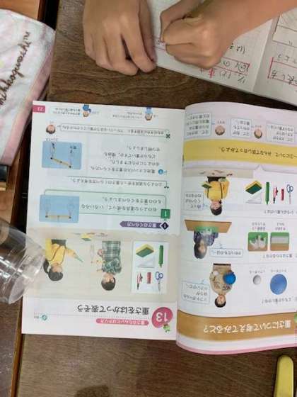 子どもたちは、いろいろな持ち物を比べてノートに記入していきます。