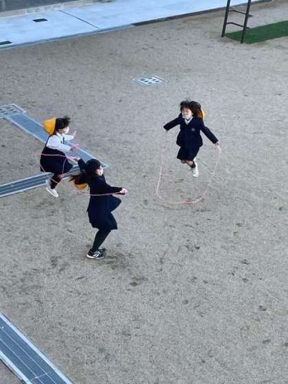 「かけ足記録会」に向けてトラックを走る児童が多く、縄跳びを楽しむ児童も増えてきました。