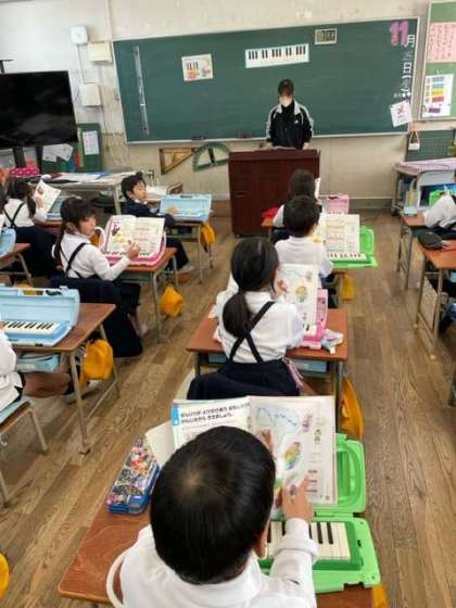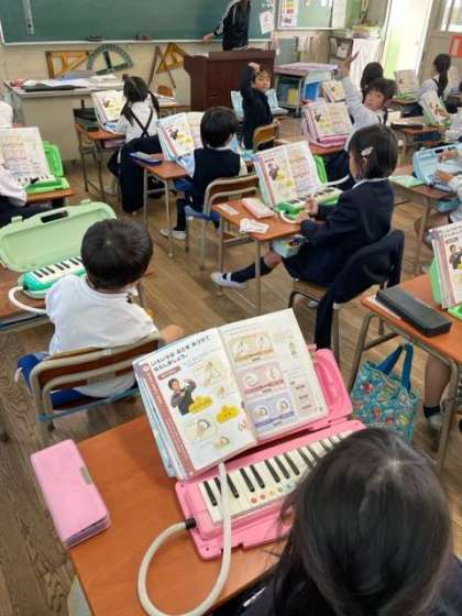 鍵盤ハーモニカを使うことにも慣れてきた1年生。いろいろな音を見つける学習でした。