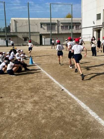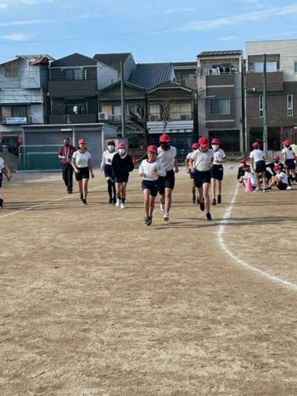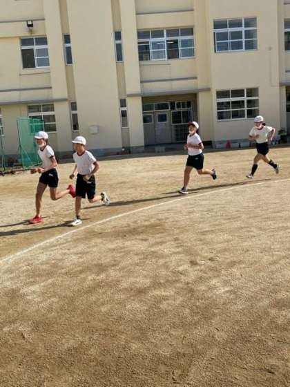 6年生は、5分間でトラックを何周走れるかチャレンジしました。