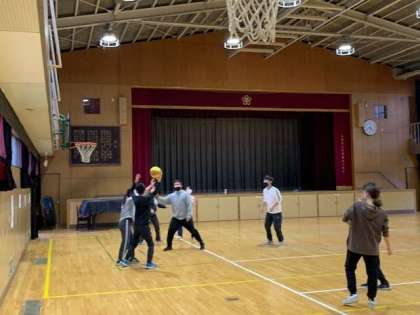 本日の研修内容は、バスケットボール型の運動の一つとして3on3のやり方を確認しています。子どもたちに教える時に、子どもたち一人ひとりが活躍できるようにするためにはどんな工夫ができるのか、チームで別れて準備体操をしながらどんな作戦でいくのかを話し合い活動を取り入れしながら活動を進めます。