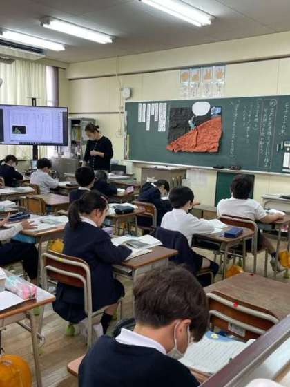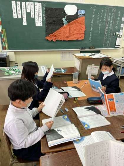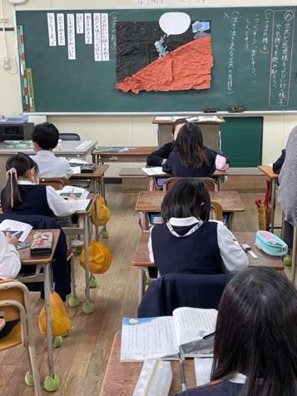 主人公の豆太がお爺さんのことを心配する気持ちを想像し、ペープサートの吹き出しの台詞を考えて音読しました。