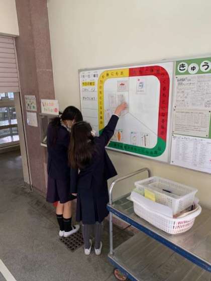 寒い、給食室前でも食育につながるカードを毎日張り替えてくれています。