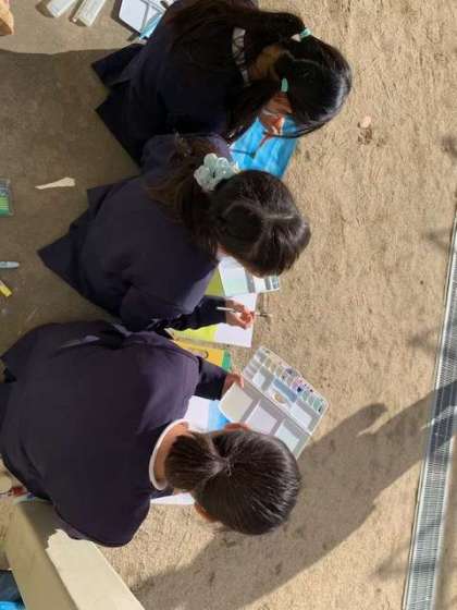 理科の単元で学習した空の様子を、水彩画で描いていきます。