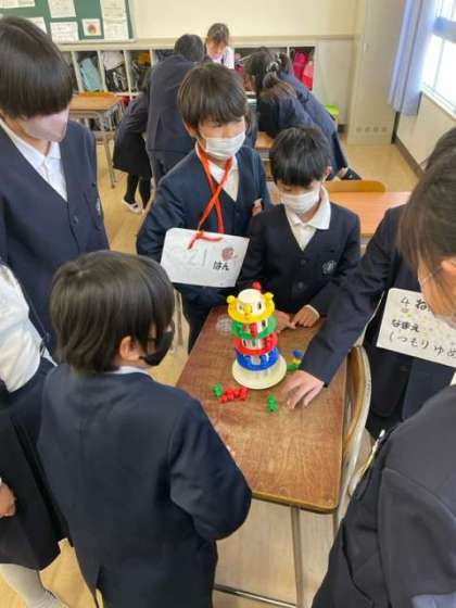 本日の5限目に、たてわり班で集まって「新年子ども会」を行いました。