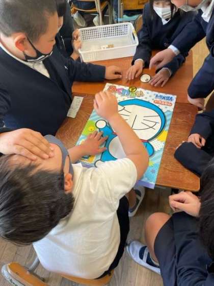 カルタや双六、福笑いに百人一首など、様々な遊びを班ごとに楽しみました。