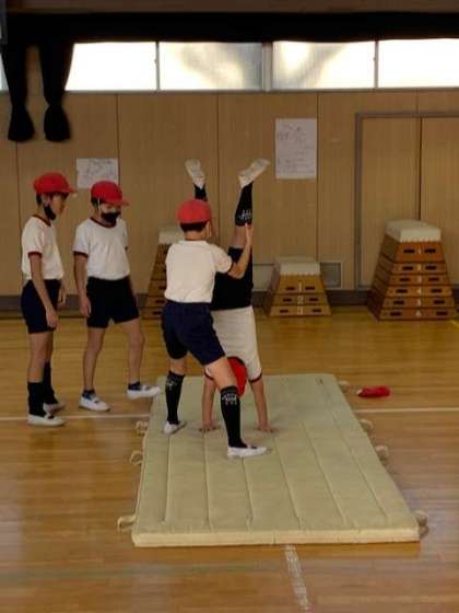 倒立に取り組んでいました。