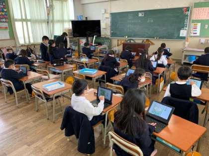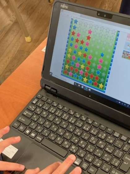子どもたちは、タブレットで、おもしろいものを見つけるのが得意です。先生たちが、知らないゲームなどどんどん見つけて試していきます。