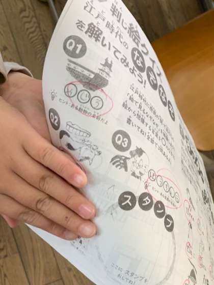 社会見学で記入してきたワークシートをみんなで確認していました。