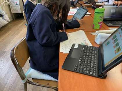 春夏秋冬で、季節によっての特徴(食べ物、植物、虫、野菜などなど)をタブレットで探していきます。