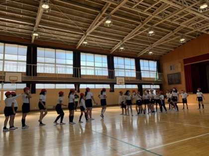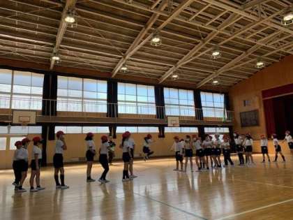 大縄跳びにちょうせんしています。学級単位でひっかかっても、連続でどんどんと跳んでいます。時間との戦いです。