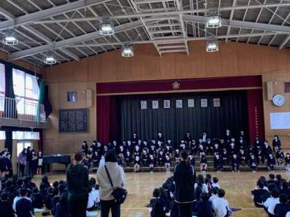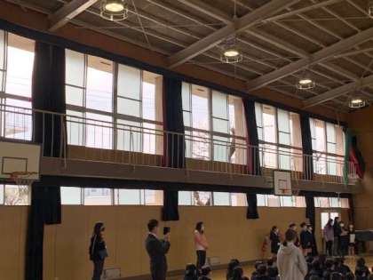 密を避けるために、1、3年と5年1組の第一部と2、4年と5年2組の第二部という2部構成で実施しました。