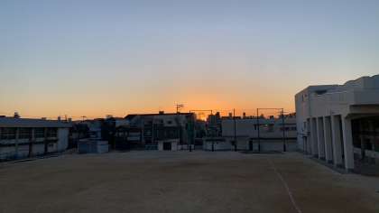この学校は、とてもきれいな夕焼けが見えます。今日も一日、子どもたちが「安心」「安全」に過ごせたかどうかを振り返りながら、1日を終えていきます。