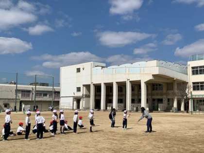 天気のいい中で、大縄跳びの練習に励んでいます。