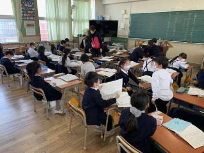 1年間の思い出を文章に表そうと順序立てて書いていきます。この時間は、自分の書いた文章を友だちに見てもらいチェックをしてもらいます。