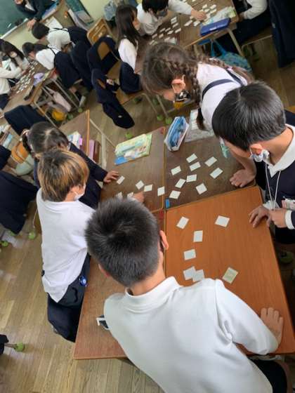 習った単語を使って、神経衰弱をしています。いくつペアを作れるかなっ??