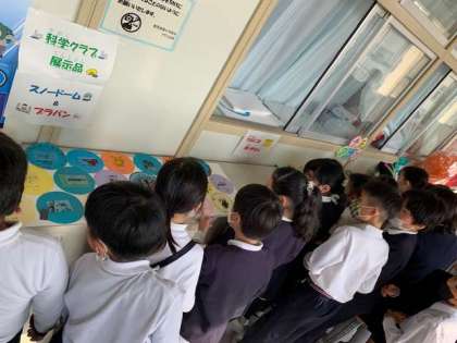 次年度、入るクラブ活動の参考にするために今年度のクラブ活動の成果物を見てまわります。