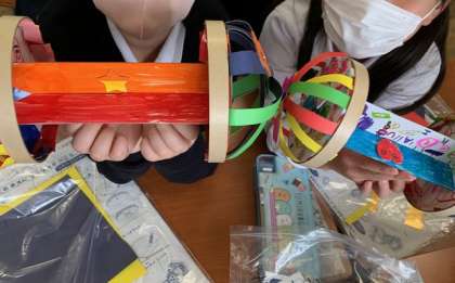 風等で転がるとカラフルな色がきれいに見られると思います。みんなよくがんばりました。