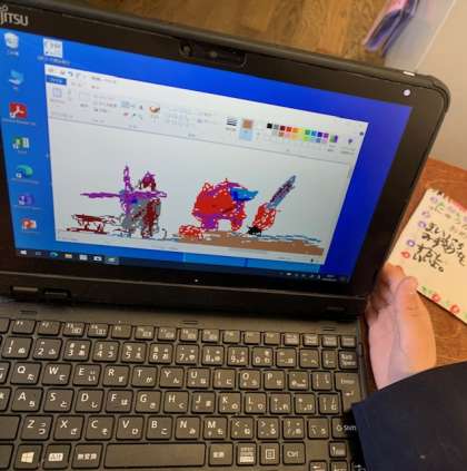 タブレットを使っての学習です。教室に入ると、「先生、見てみて、ちょっと来て。」とタブレット内のソフトを使って描いた自作の絵を見せてくれました。