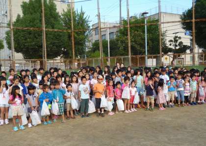 ラジオ体操のあと、参加者みんなで公園の清掃を行う予定ですのでご協力をお願いいたします。