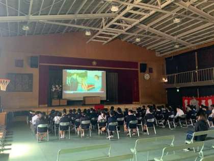 卒業を控えた6年生が、今日は卒業式の予行と6年間を振り返る映像を見ました。