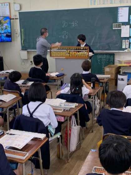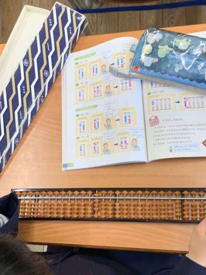 そろばんの使い方の学習です。電卓が主流の世の中でもそろばんの使い方を知識として知っておくことは大切です。
