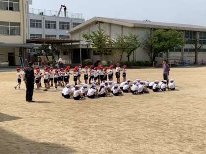 「前にならえ」「気をつけ」「起立」と言われてもまだまだわかりません。一つの言葉と動きを確認していきます。