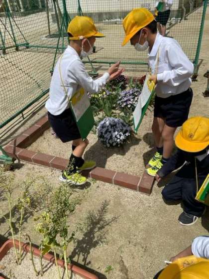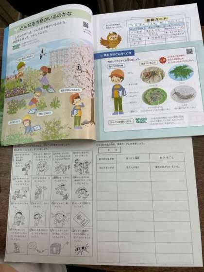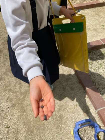 学習園でダンゴムシやチョウ、クモや幼虫などの生き物を見つけることができました。