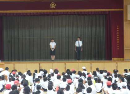 3日から、教育実習が始まりました。児童集会のときに校長先生から教育実習生の先生を紹介し、そのあと自己紹介をしていただきました。実習期間は10月2日(金)までの約1か月です。