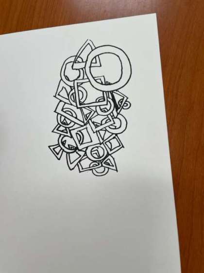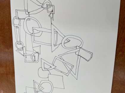 線描画をしました。いろいろな形を重ねてデザインするのは楽しいようです。みんな集中して描いていました。