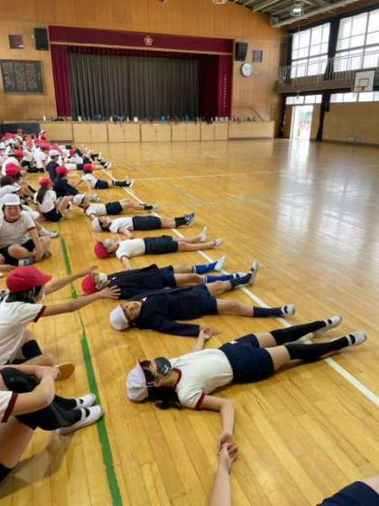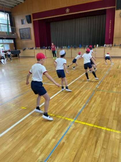 スポーツテストに向けて「反復横跳び」の練習もしました。