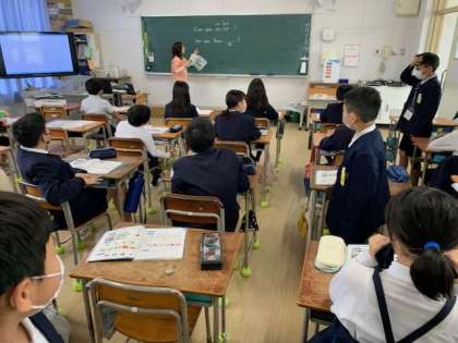 英語で質問し、英語で答えを絞っていきます。6年生は、英語も上手に話します。さすがです。6年生。