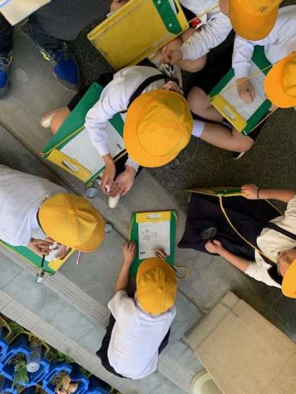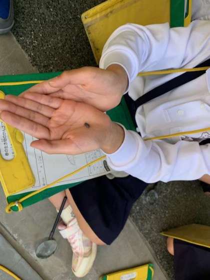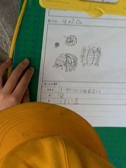 「春を見つけよう」と観察していました。ダンゴムシを観察グループは、かわいいとみんなで観察です。