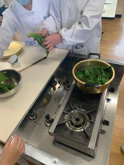 調理実習では、「青菜をゆで方を知る」をめあて進めています。