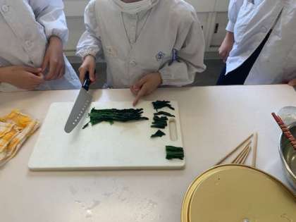 切る時は、包丁と反対の手は「猫の手」確認しながら作業を進めていました。