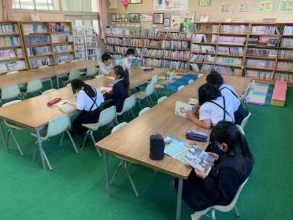 図書の時間です。今日は学校司書の方は来られていませんが、担任の先生主導のもと、借りる本と読む本を手に子どもたちはじっくりと静かに読書に取り組めています。