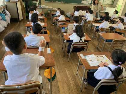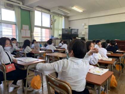 手遊び歌は、盛り上がる定番です。1年生でもみんな大盛り上がり!!おいしい給食を食べて少し眠たくなってきたお昼からの時間も目がぱっちり開きます。